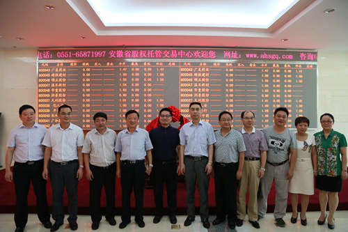 2014年7月31日,安徽省股權托管交易中心舉行第七批企業掛牌儀式,來自阜陽市、安慶市的安徽溫禾新材料科技股份有限公司、安慶市華鑫重工股份有限公司、安徽省潤普納米科技股份有限公司3家企業成功登陸中心掛牌。省政府金融辦資本市場處饒娜,省股權托管交易中心總經理孫強,以及安慶經濟開發區、安慶大橋開發區、宜秀區、潁上縣等有關政府部門領導、掛牌企業、推薦機構代表等共計50多人出席了此次儀式。